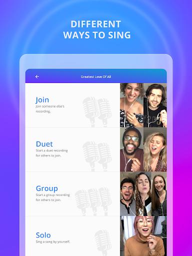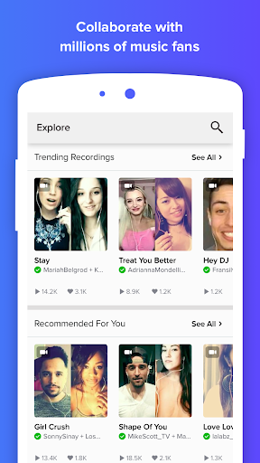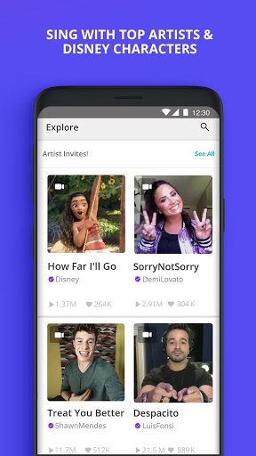 Love music? With Smule, you can sing and make music with friends and fans around the world! Karaoke solo or duet with people across the globe. Sing duets with major artists like Ed Sheeran and Luis Fonsi. Sing a cappella, solo or with a group. Dance or play along to top hits. Use audio effects and video filters while singing your favorite karaoke songs. Try it free!