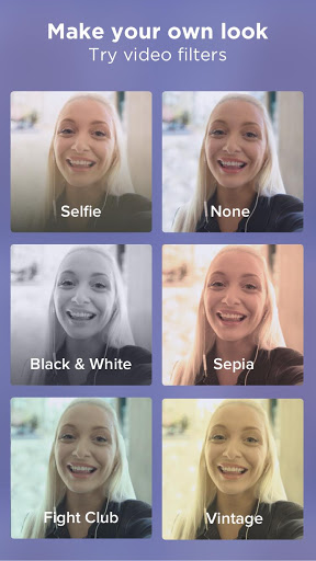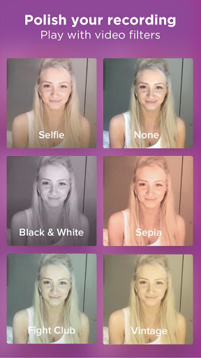 • Apply video filters to make your recording look pro! Choose from Selfie, Vintage, Black & White, Sepia, and Fight Club.