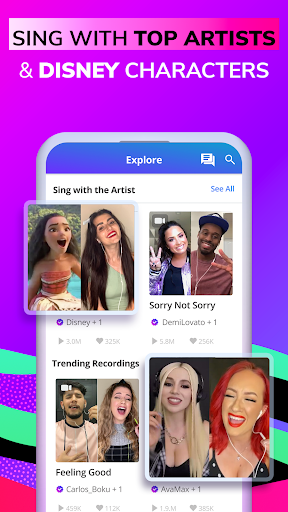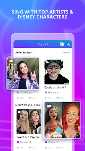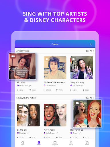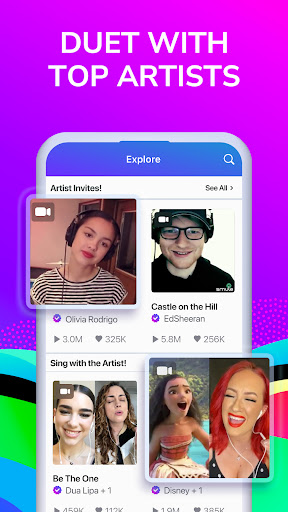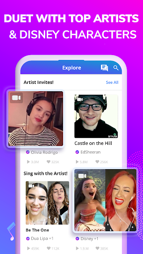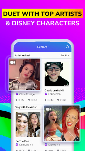 - Duet with Stars: Sing alongside Ed Sheeran, Dua Lipa, Olivia Rodrigo, Disney characters & more! Feel like you're in the studio with your favorite stars