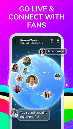 - Live Performances: Join the worldwide stage where singers perform live! Host or join live karaoke sessions, perform for real-time audiences & grow your fanbase