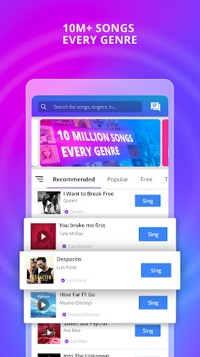 Sing karaoke free with over 10 million+ songs across multiple genres