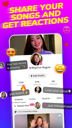 Build your profile, gain followers, and receive feedback on your vocal performances. Watch as your singing videos and karaoke covers collect joins and likes from music fans globally. Many Smule singers have used our platform to find their audience and create lasting relationships with friends and fans. Join millions who've discovered new dimensions to their voice!